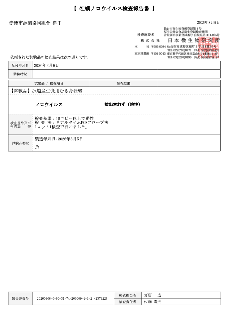 ノロウイルス検査結果報告
