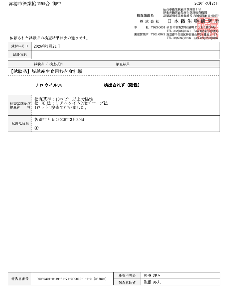 ノロウイルス検査結果報告